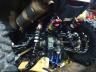 Bei der Enduro wird erstmal der statische Durchhang eingestellt. Das heißt man bockt das Moped auf misst den Abstand zwischen Achse und einen festen Rahmenteil (vorne und hinten natürlich und im 90° Winkel zum Boden). Dann stellt man das Moped wieder auf die Räder (aber nicht belasten durch Fahrer) und misst wieder den Abstand. Die Differenz ergibt den statischen Durchhang. Als nächstes setzt man sich auf das Moped in Kampfmontur sprich komplette Ausrüstung. Jetzt ist wieder messen angesagt. Diese Differenz zwischen aufgebockt und auf Rädern mit Fahrer ergibt dann den dynamischen Durchhang. Diese beiden Arten von Durchhang werden mit der Federvorspannung eingestellt. Lässt sich dies nicht korrekt einstellen muss eventuell eine andere Feder mit einer anderen Federrate verwendet werden. Die Werte vom statischen und dynamischen Durchhang sind halt immer abhängig vom Fahrzeug (unter anderem maximaler Federweg). Als nächstes gilt es die Druck- und die Zugstufe einzustellen. Wenn ich richtig bin lässt sich die Stage 4 von Elka in der Druckstufe im LOW- und HIGH-Speed Bereich einstellen. Die Druckstufe beeinflußt das verhalten des Dämpfers beim einfedern, LOW-Speed bei langsamen Einfedern und HIGH-Speed bei schnellen Einfedern. Schlägt sie beim einfedern durch oder federt zu weit ein ist die Druckstufe zu gering. Spricht das Federbein auf Unebenheiten schlecht an und fühlt sich zu hart an dann ist die Druckstufe zu hoch. Die Zugstufe ist für die Ausfedergeschwindigkeit verantwortlich. Wird das Fahrwerk nach mehreren Wellen immer härter dann ist die Zugstufe zu hoch, das heisst das Federbein federt nicht schnell genug nach der ersten Welle aus und bei der nächsten Welle kann der zur Verfügung stehende Federweg nicht genutzt werden da das Federbein z.B. immer noch zu 50% zusammengedrückt ist. Fängt das Fahrwerk nach Bodenwellen an zu Stempeln oder das Heck kommt an der Absprungkante sehr hoch ist die Zugstufe zu gering. Das Federbein federt zu schnell aus und stößt sich sozusagen am Boden ab oder knallt gegen diesen. Die Druckstufe wird in der Regel am Federbein oben oder am Ausdehngefäß verstellt und die Zugstufe in der Regel unten am Federbein. Wenn man anderes Dämpferöl d.h. eine andere Viskosität verwendet kann man ebenfalls sehr viel Einfluß auf das Dämpfungsverhalten nehmen. Wenn man mal testen möchte wie weit die Federwege ausgenutzt werden, kann man das am einfachsten mit einem Kabelbinder. Den befestigt man einfach an der Kolbenstange des Dämpfers oder halt an der Telegabel.